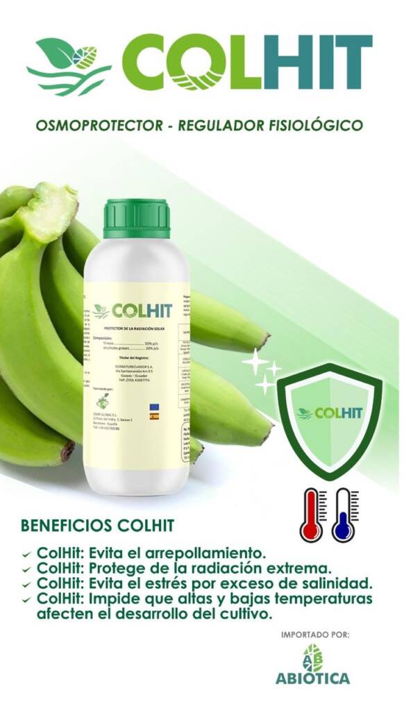 COLHIT: genera un aporte importante de energía en la planta generando una fitolaxia adecuada en la estructuración de la hojas de la planta, en el cultivo de banano evita el arrepollamiento.